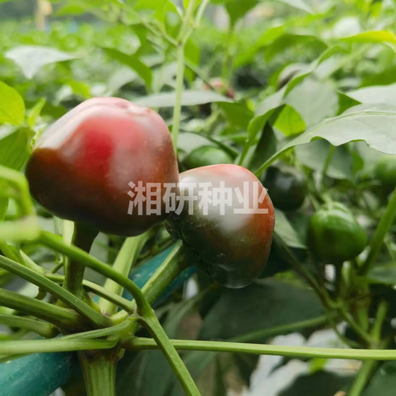中熟、单生、圆珠形泡制朝天椒品种。株高72cm,植株直立性强,枝条硬,叶色绿;果实圆珠形,果长4.3cm,果宽4.5cm,前后期果实一致性较好,单果重24g左右,果实绿色转深红色,味辣,肉厚。坐果性好单株挂果多,丰产潜力大,耐湿热,抗疫病及炭疽病能力较强,适合作泡辣椒加工。
