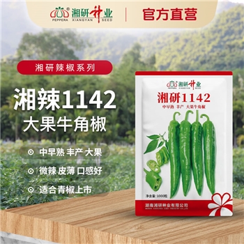 规格:1000粒/袋 中熟,浅绿色长牛角椒,耐贮运,抗性和商品性好
